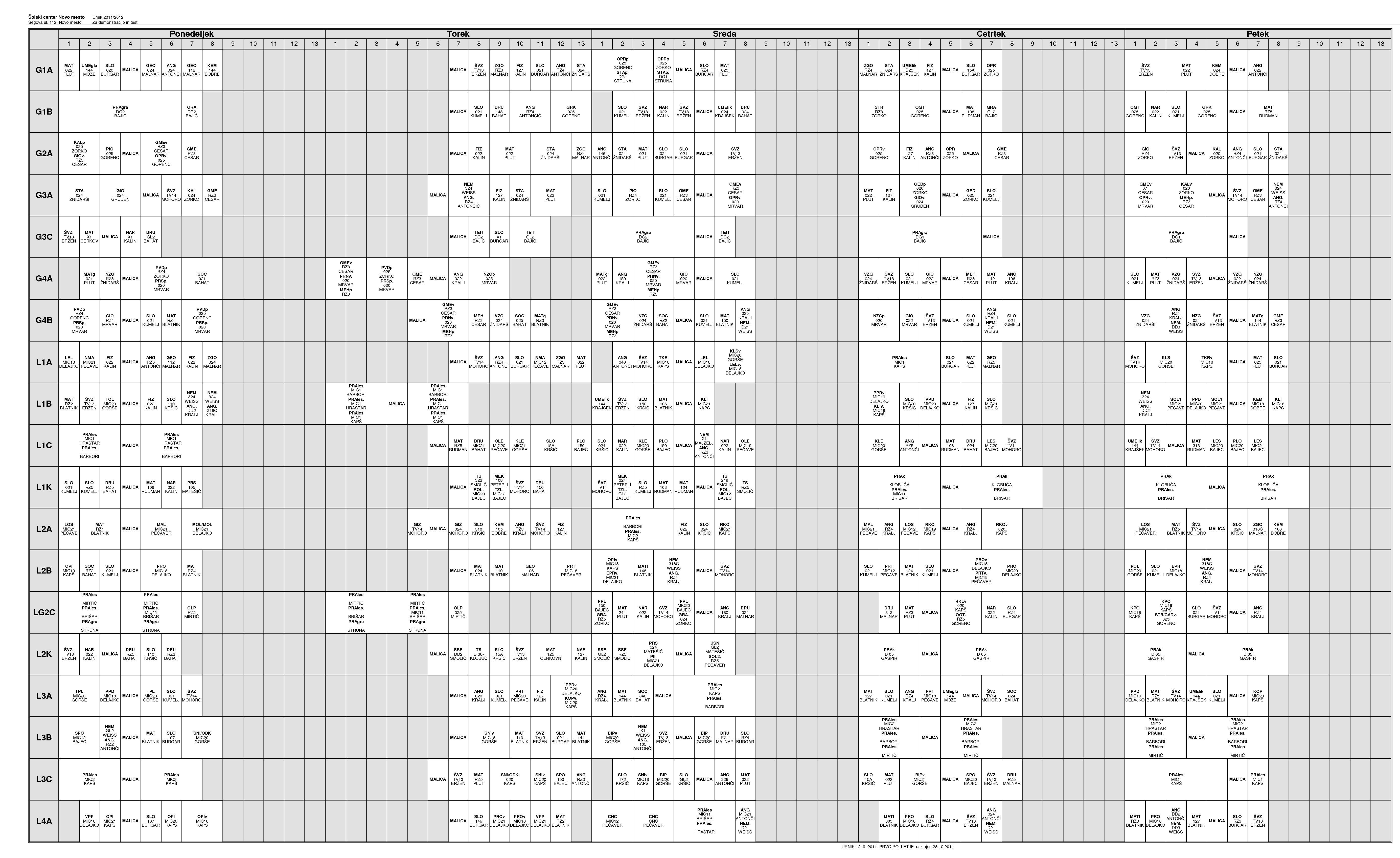 Od torka, 8. novembra 2011 velja nov urnik. Ogledate si ga lahko