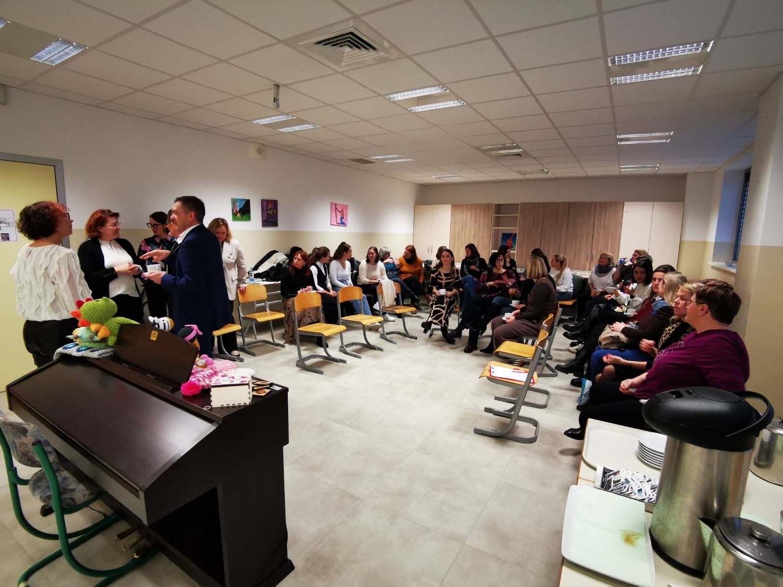 Na Šolskem centru Novo mesto smo 5. februarja 2026 z velikim veseljem gostili svetovalne delavke osnovnih šol. Zanje smo pripravili zanimivo predstavitev naših izobraževalnih programov ter jim omogočili vpogled v delo in ustvarjalnost naših dijakov. V uvodnem delu sta gostje prisrčno pozdravila direktor Šolskega centra Novo mesto dr. Matej Forjan in ravnateljica naše šole Damjana Gruden ter poudarila pomen dobrega sodelovanja med osnovnimi šolami in našim šolskim centrom. Svečan uvod je z nastopom obogatil Zbor Šolskega centra Novo mesto, program predšolska vzgoja, ki je s pesmijo ustvaril prijetno in navdihujoče vzdušje. Gostje so nato spremljale predstavitev dela dijakov programa lesarstvo, ki so prikazali celoten proces nastajanja izdelka – od prvotne ideje, načrtovanja in izbire materiala do z laserjem dovršenega končnega izdelka. Z zanimanjem so si ogledale tudi razstavo gradbenih projektov in maket ter razstavo lesarskih izdelkov dijakov zaključnega letnika, ki odražajo njihovo strokovno znanje, ustvarjalnost in predanost poklicu. Obisk je potekal v zelo prijetnem in sproščenem vzdušju ter je predstavljal lepo priložnost za izmenjavo izkušenj, povezovanje in nadaljnjo krepitev sodelovanja med osnovnimi šolami in Šolskim centrom Novo mesto.