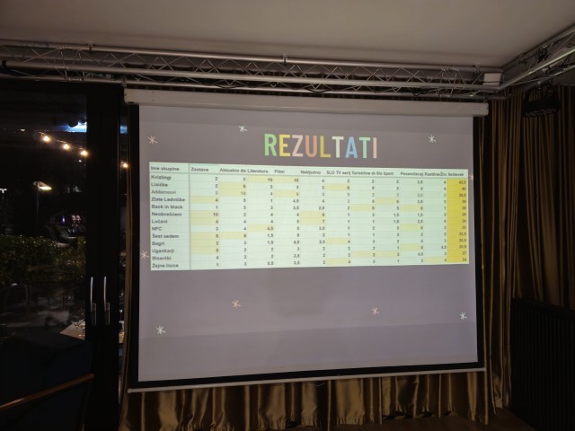 V četrtek, 20. 11., je v KCJT ArtCaffe potekal pub kviz v organizaciji Kviz mojstrov, ki izvajajo kvize po celotni Sloveniji. Dogodka se je udeležila tudi ekipa Kvizlingi, ki so jo sestavljali profesorji SZKŠ Goran Matešič, Slobodan Kecojević, Denis Škofič in urednica Založbe Goga. V desetih kategorijah so s svojim znanjem in taktično igro na koncu osvojili še zadnjo »kvizaško trdnjavo«, tako da se lahko ponašajo z zmago v vseh štirih novomeških lokalih, kjer prirejajo pub kvize.