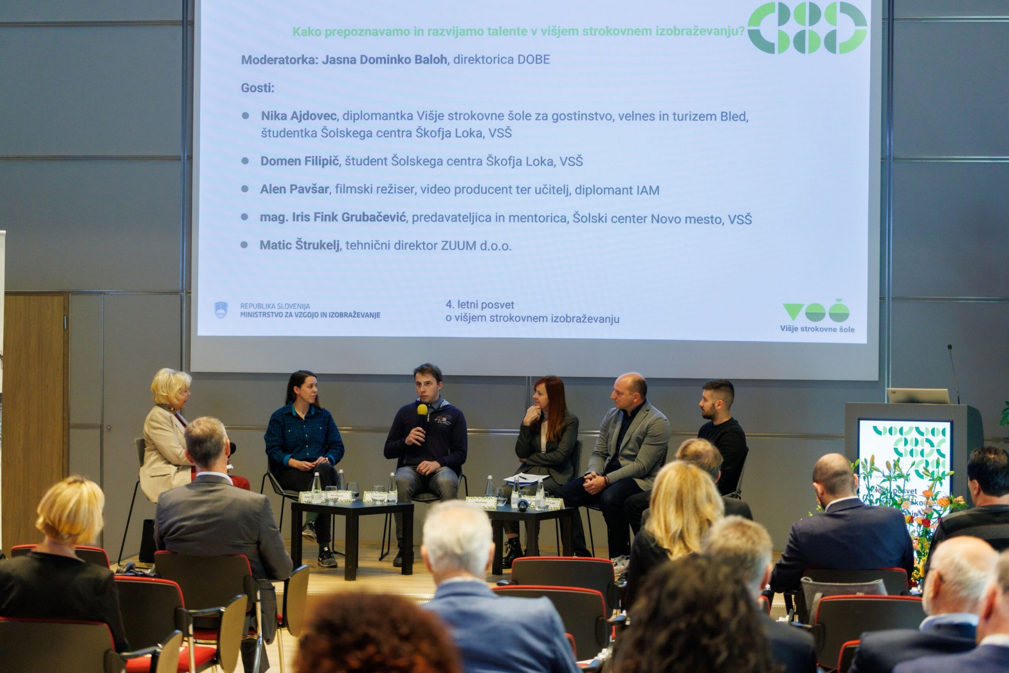 V okrogli mizi z naslovom »Kako prepoznavamo in razvijamo talente v višjem strokovnem izobraževanju?«, ki jo je vodila Jasna Dominko Baloh, direktorica DOBE, so sodelovali študenti, diplomanti, predavatelji in delodajalci, ki so delili svoje izkušnje in poglede na to, kako v praksi prepoznati, spodbujati in razvijati talente.